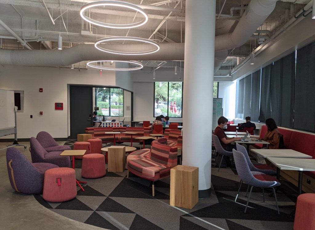 The Scott A. McGregor Computer Science Center sits on the westmost end of Harvey Mudd’s campus, at the intersection between North Dartmouth Avenue and Platt Boulevard. If you’re looking for it, the easiest way to find it is to walk all the way down Ac End and turn left—if you see thick stairs, glass walls, and triangle-shaped benches, you’ve arrived at the courtyard. Entrances on either side of the building lead into the second floor. On the left side, you can find the pair programming labs, where computer science classes like CS 131, CS 60, and CS 5 Lab are held. This is also where you can find grutoring sessions, where students that have already taken a CS class are available to help other students currently taking the class. On the right, you’ll find CS Clinic rooms.