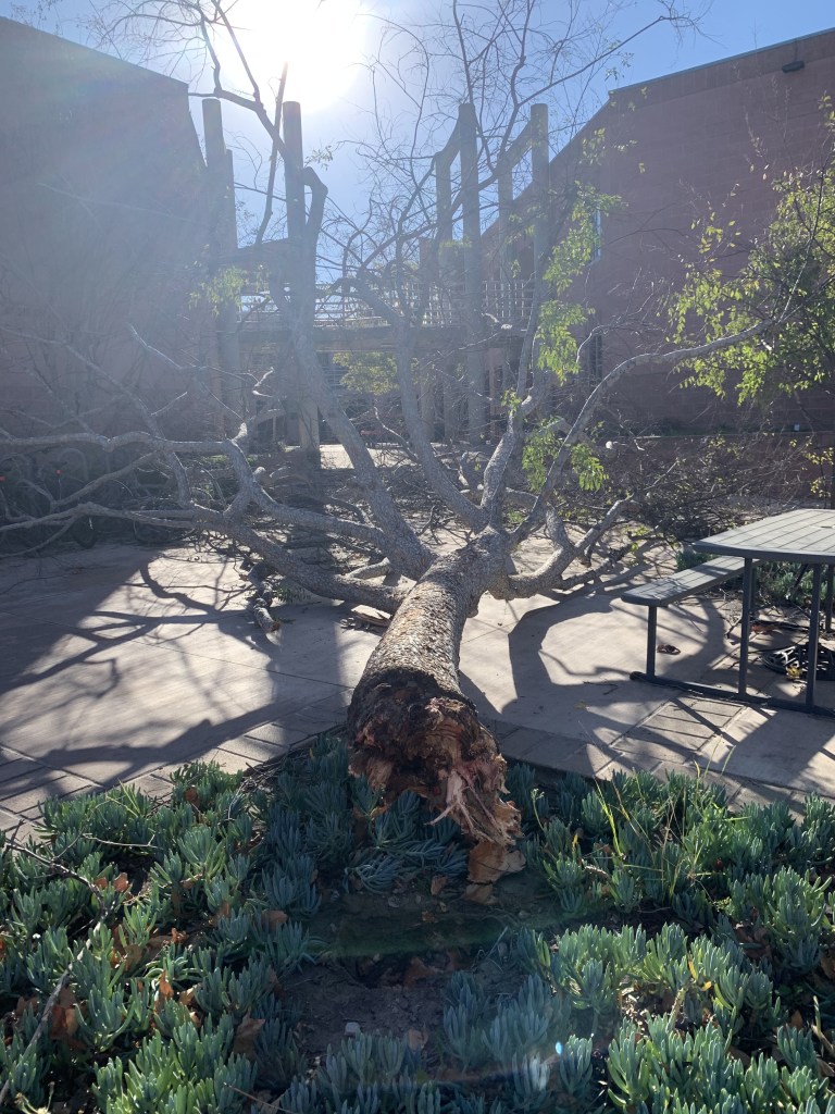By the time they left the next day, all of Claremont was ravaged with destruction. Blobs aren’t exactly the most experienced or inconspicuous thieves, as evidenced by the toppled outdoor classrooms, damaged power lines, and disproportionately high number of downed trees. Luckily, the administration and students simply went on with their busy lives, chalking it up to the Santa Ana winds.”