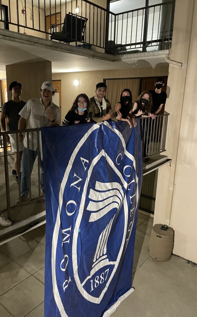 But the task in front of them was far from simple. “But how? How do we steal [the banner]?” John’s conspirator Justin Jiang ‘23 said, in describing the challenges the banner posed. “It’s elevated, it’s a huge banner, and it’s on Pomona’s campus. How do we get it back to Mudd without getting caught?”