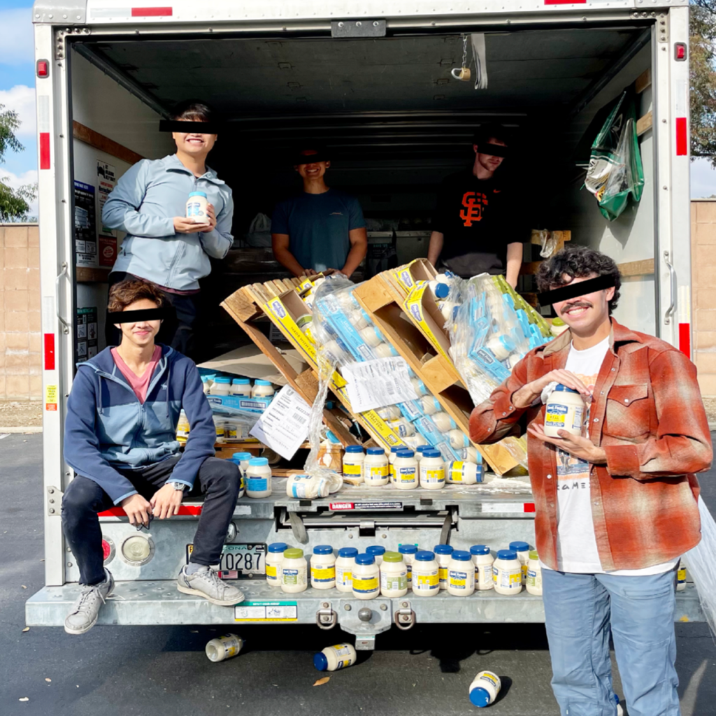 One prankster kindly recounted the scene upon arrival to The Muddraker: “The warehouse is full of random stuff. Couches, flat-screen TVs everywhere. But not any brands that you’ve heard of, either. The [warehouse manager] tells us that we can have all the mayo we want, if we can get to it. We spend an hour clearing a path through old sofas and broken TVs to the mayo, and eventually, we’re able to forklift the pallets of mayo out. There was so much mayo. It was pallets and pallets and pallets. We took maybe 5% of the mayo that was there. And we already took a lot.”