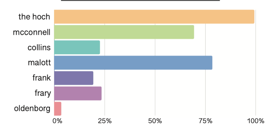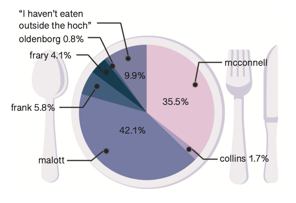 Frosh are making good use of the return of 5C dining — and they have clear favorites amongst the lot. Besides the Hoch, frosh favorites are Pitzer and Malott, likely thanks to a combination of their proximity and quality. We at The Muddraker (read: me, the author of the article) would also like to personally protest Malott’s win over Pitzer — clearly a statistical error since all the Pitzer enjoyers were too busy eating good food to fill out the survey. We were also surprised that there’s a frosh who has never gone to the Hoch!
